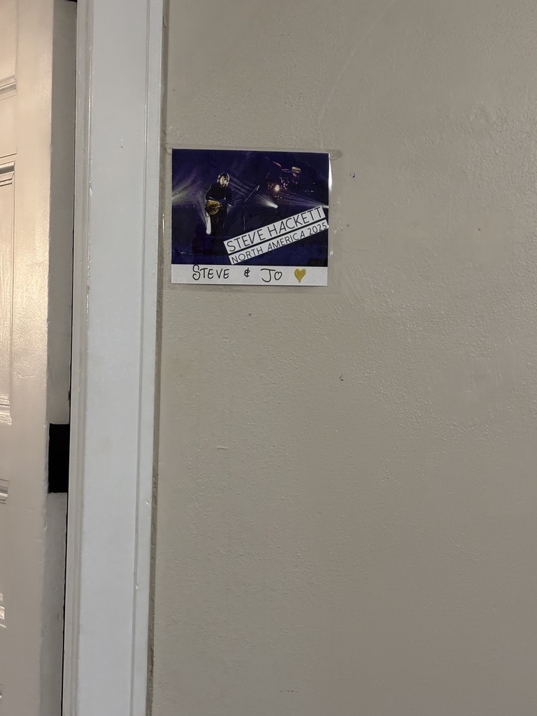 This is where my experience gets more exciting. Before the show, I, along with a handful of other people, was treated to a private backstage visit with Steve and Jo Hackett. I’ve had a number of encounters with the Hacketts over the years. We met for the very first time on my first Cruise to the Edge in 2019, and then I had a few more scattered visits with them at pre-show meet and greets and then, more notably, on a post- Cruise to the Edge trip to Delray Beach, FL in 2024, where a small group of us were led to a Japanese Garden and a few other scenic stops. I hit it off especially well with Jo, probably being that we were the only two women there. At the end of that visit, Jo gave me an email to reach out to during future tours. Here’s a few photos from that afternoon!