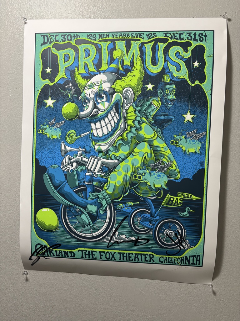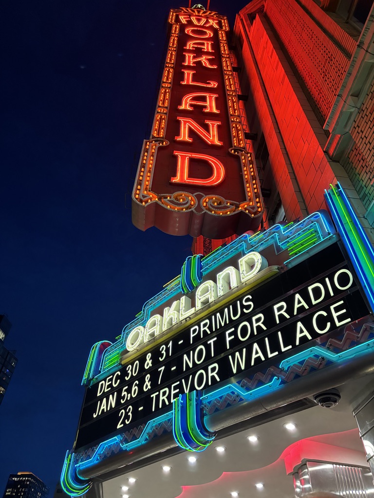 Happy New Year to everyone! It’s good to be back with my first blog post of the year after a couple of weeks away for the holiday. It only seemed right to start by talking about attending Primus’ yearly NYE shows at the Fox Theater in Oakland, CA. This was my second time attending, and there was about as much wackiness as one could expect. The theme of this year’s shows was “Send in the Clowns,” and fans were encouraged to come dressed in their favorite clown costume, with the opportunity to enter into a contest New Year’s Eve, hosted, appropriately enough, by the band’s opening act, Puddles the Clown. Don’t know him? He’s known as the Sad Clown with the Golden Voice, and having seen him several times over the years, with and without Primus, Puddles has more than earned that title. Anyway, the last two days of 2025 turned out to be overcast and gloomy, with New Year’s Eve itself leaving us standing out in pouring rain while in line for the doors. I came prepared with a rain poncho and umbrella, so in the end, I survived the wet conditions.