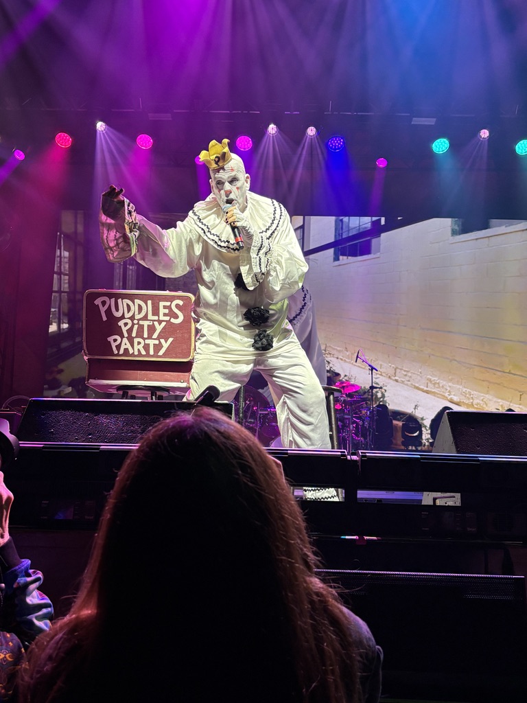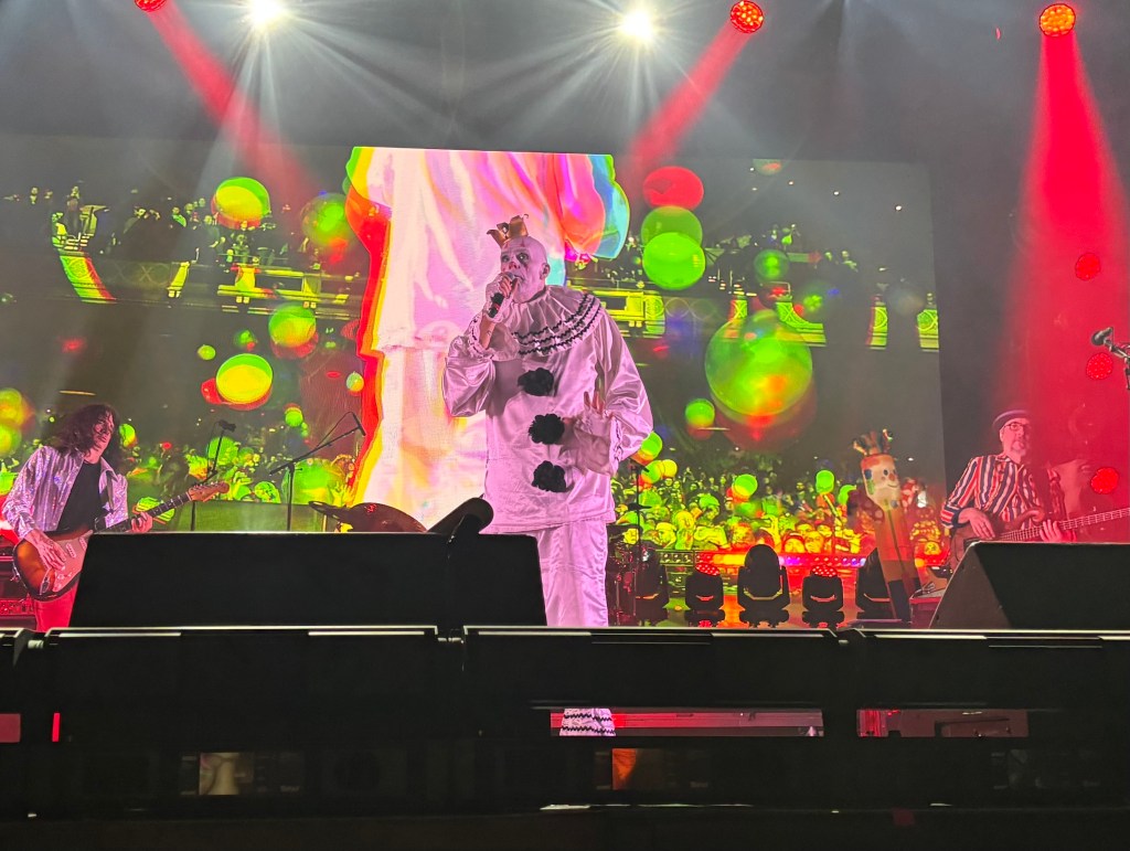 Primus came on at about 10:45PM. Long past my bedtime, but I certainly wasn’t complaining. Primus traditionally starts every show with the “Clown Dream” music from Pee Wee’s Big Adventure, only tonight, in keeping with the clown theme, they showed the actual scene from the movie on the screen as they took the stage, which was pretty cool! This was a completely different set that included some of my personal favorites, like “Jilly’s on Smack,” “The Antipop,” and “To Defy the Laws of Tradition.” When the time came, we all took part in the ten-second countdown and formally rang in 2026. They brought out Puddles at the top of the hour for a fiery cover of “N.I.B” by Black Sabbath.