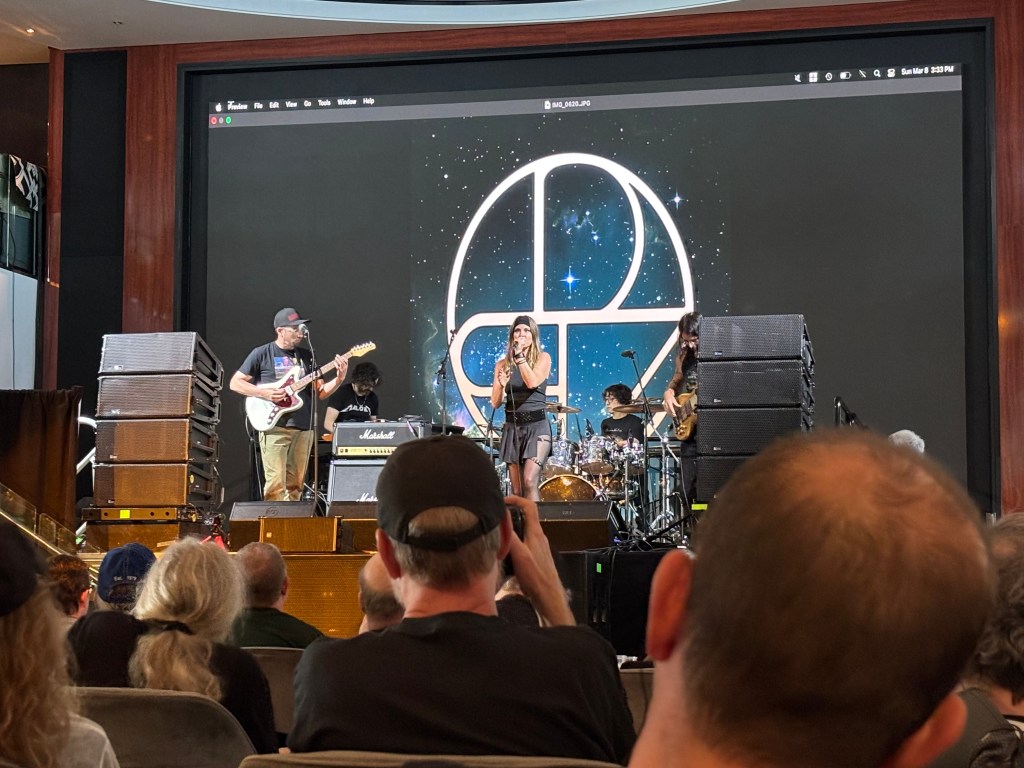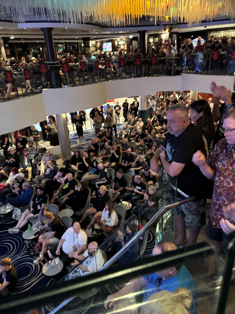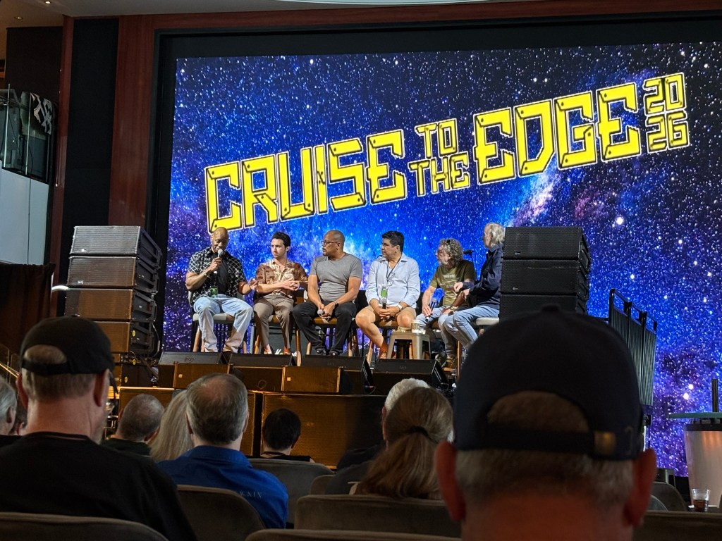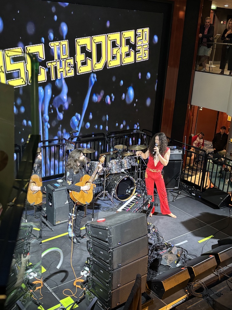 Our final evening aboard the Cruise to the Edge 2026 was culminated by, what many consider to be, among the top performances: Crown Lands in the Atrium. That was, hands down, the biggest Atrium crowd on the whole cruise. This was Crown Lands’ first time on CTTE, and I think they can expect to be invited back with great enthusiasm. Those two made a real impression, because not only did they draw the biggest Atrium crowd, but they were the only act I saw that was cheered back onstage for, not one, but two encores. Within seconds of them starting, the Rush influence was very apparent, from the guitar tones, to the vocals belted out by Cody Bowles, who also covered drums. The audience reception was so touching and I could tell the duo were touched as well. They made such an impression that a friend of mine planned a special trip out to Crown Lands’ native Canada just to see them perform again!